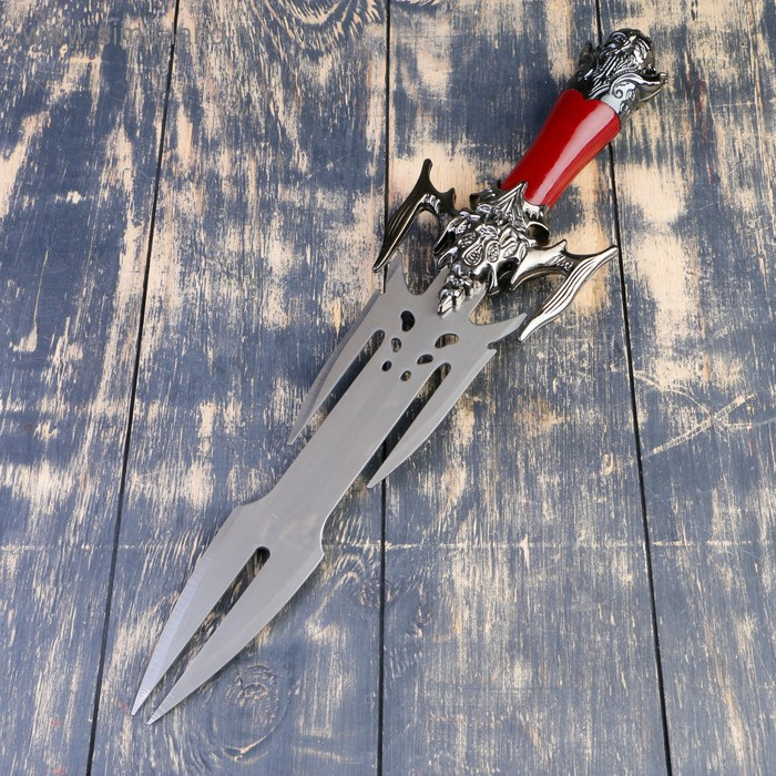 Сувенирный меч на планшете, клинок 27 см, рукоять с головой старца