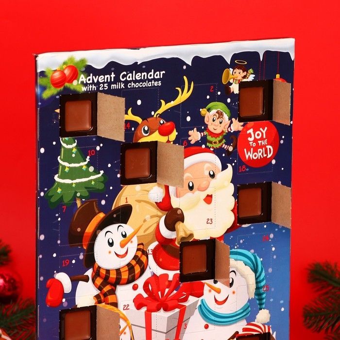 Этот шоколадный шедевр создан с любовью и заботой, чтобы погрузить вас в атмосферу новогодней сказки и праздничного ожидания. Нежные шоколадные фигурки словно скрывает в себе тайны каждого дня накануне праздников.