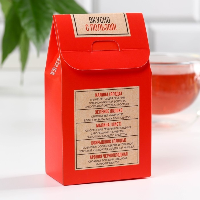 Состав: калина (ягода), малина (лист), боярышник (плоды), арония черноплодная, зелёное яблоко.