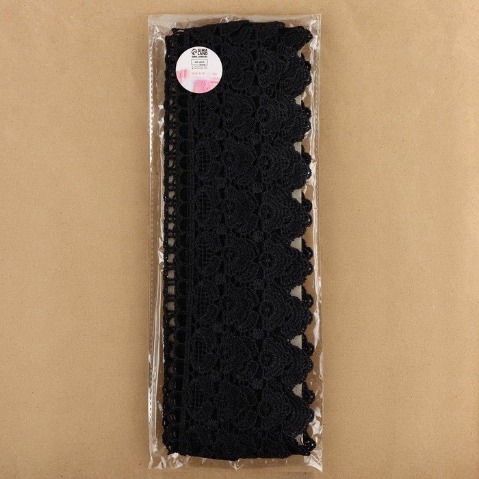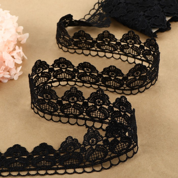 Кружево гипюровое, 45 мм × 6,8 ± 0,5 м, цвет чёрный