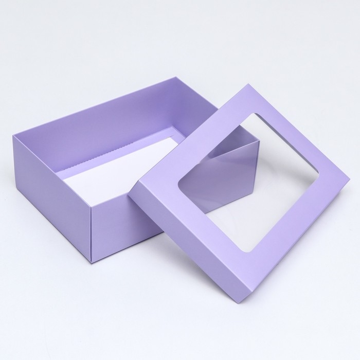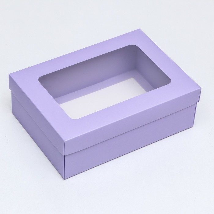 Коробка подарочная складная, упаковка, крышка-дно, с окном, сиреневая , 24 х 17 х 8 см