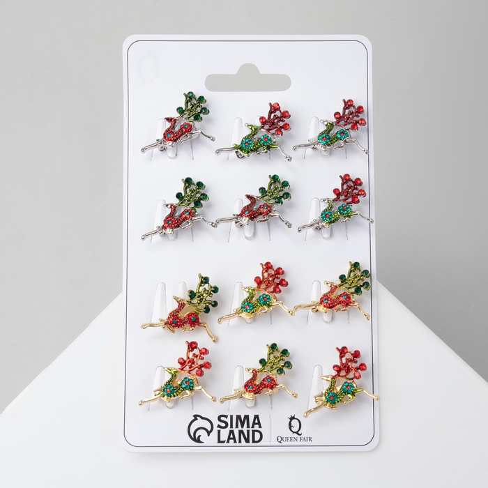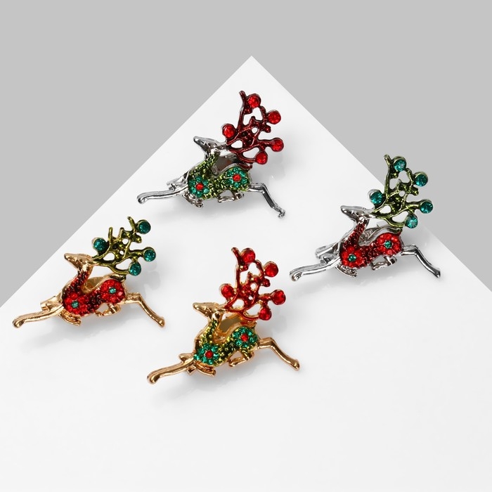 Брошь новогодняя «Олень» парящий, цвет МИКС (неделимая фасовка 12 шт., цена за шт.)