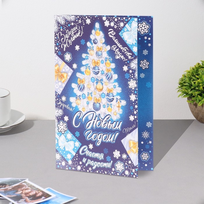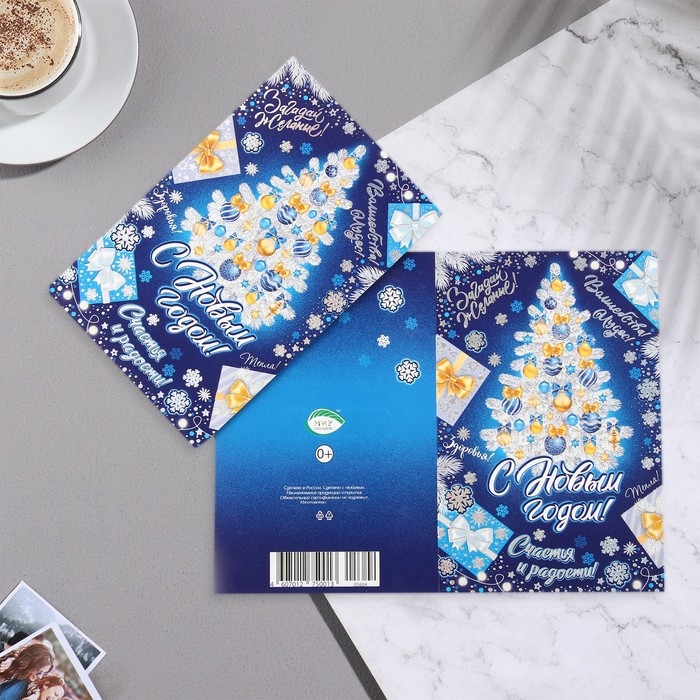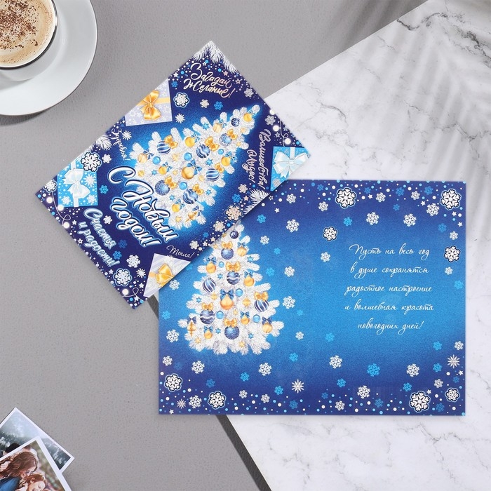 Открытка-евро "С Новым годом!" конгрев, тиснение, ель, 12,5х19,5 см