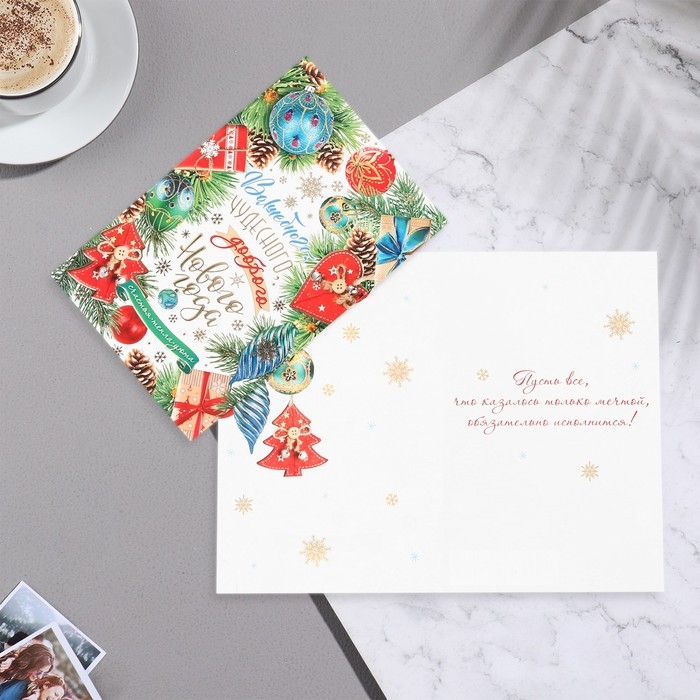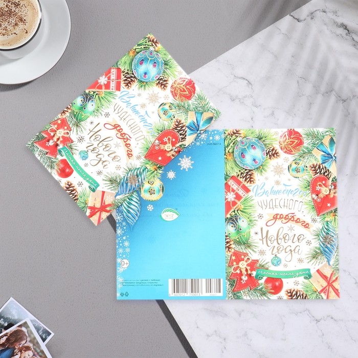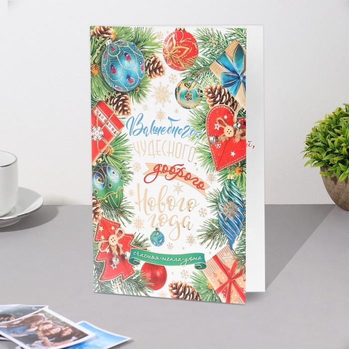 Открытка "Вошебного Нового Года!" конгрев, тиснение, шишки, 12,5х19,5 см