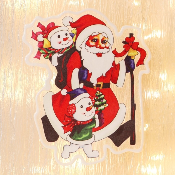 Наклейка на стекло "Дед Мороз со Снеговиками-малышами в наушниках" 11х15 см