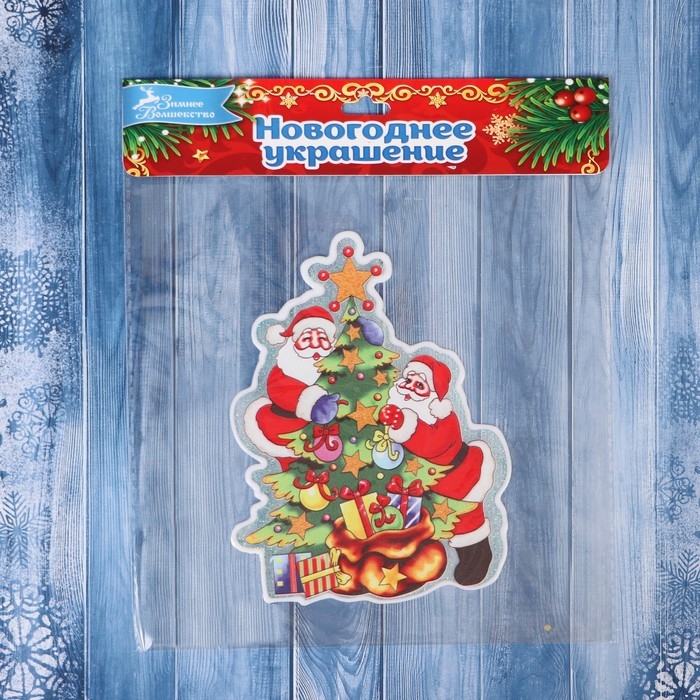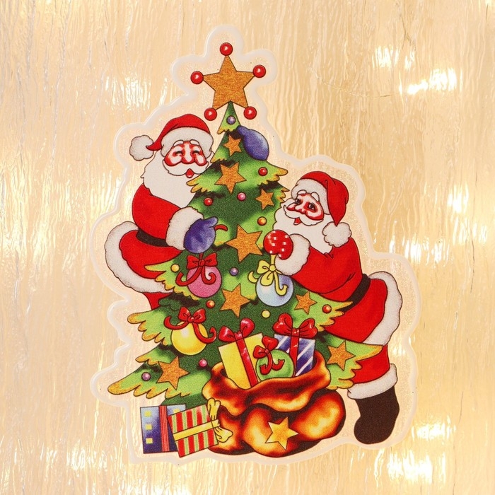 Наклейка на стекло "Деды Морозы у ёлки" 11х15 см