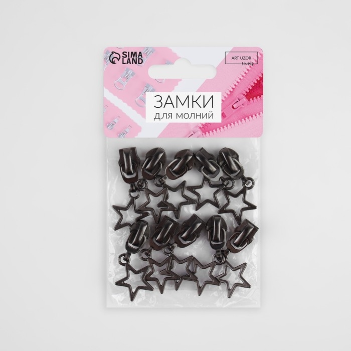 Бегунок полуавтоматический для молнии «Спираль», №7, декоративный «Звёзды», 10 шт, цвет чёрный никель