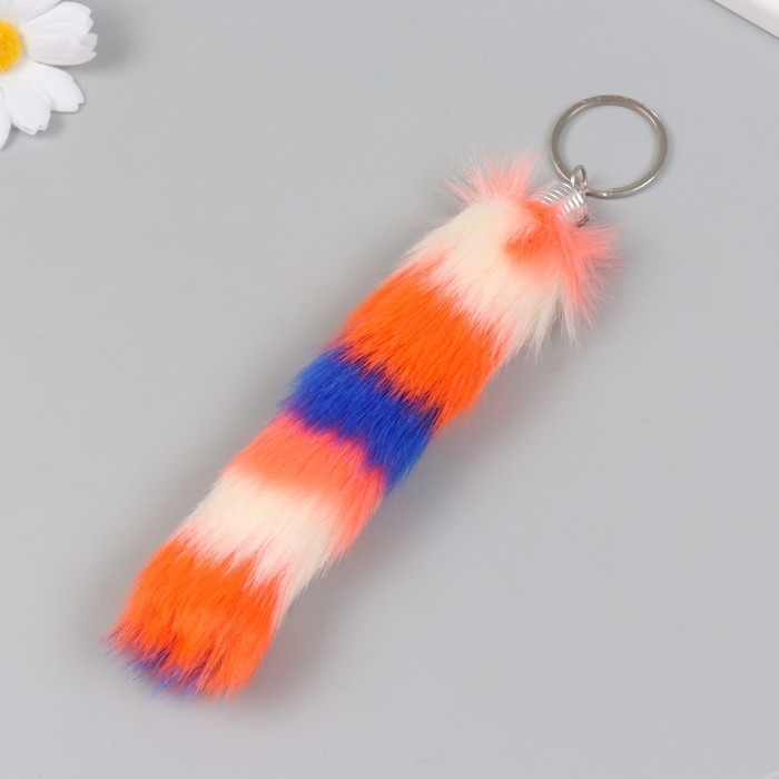 Пушистик на кольце "Хвост разноцветные полоски" МИКС h=15 см