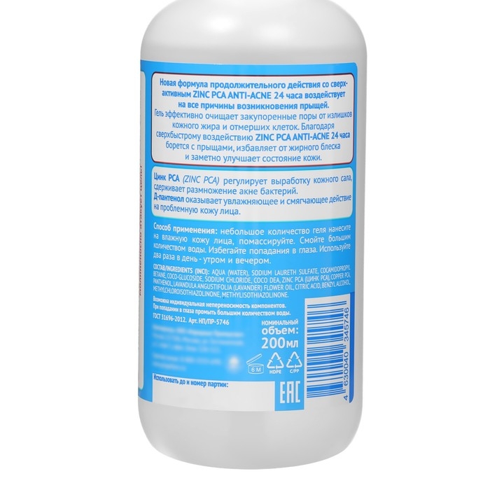 Гель для умывания от прыщей ПРОПЕЛЛЕР Turbo Active с цинцидоном имеет густую консистенцию и легко наносится на кожу. Он быстро впитывается, не оставляя липких следов.