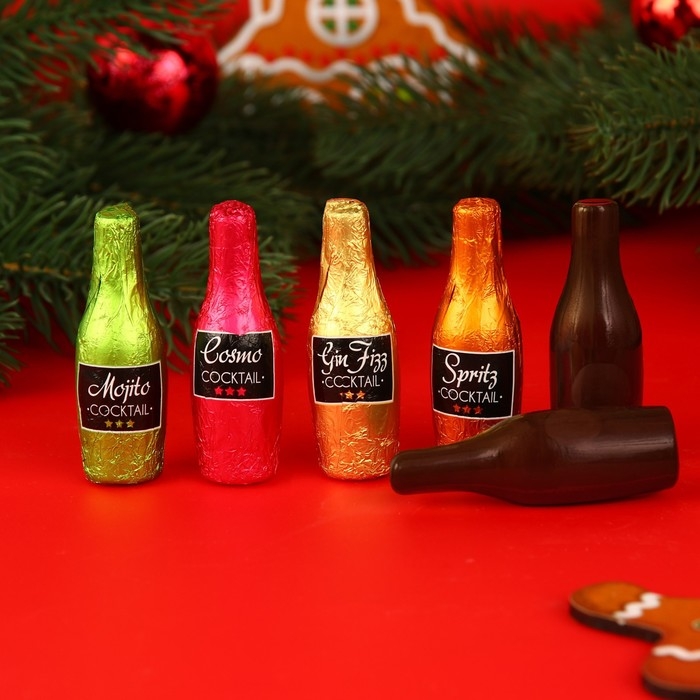 Шоколадные бутылочки из Франции станут отличным и вкусным подарком для ваших родных и близких. Попробуйте фигурки из темного шоколада с популярными коктейльными начинками: мохито, космо, джин-тоник и шпритс, вкус которых раскрывается постепенно, где согревающее терпкое ощущение начинки перекликается с насыщенным шоколадным послевкусием.