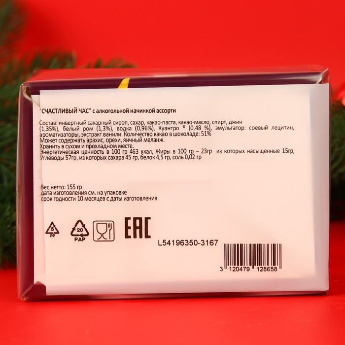 Новый год. Шоколад фигурный HAPPY HOUR, с алкогольной начинкой, ассорти, 13 ± 1 г