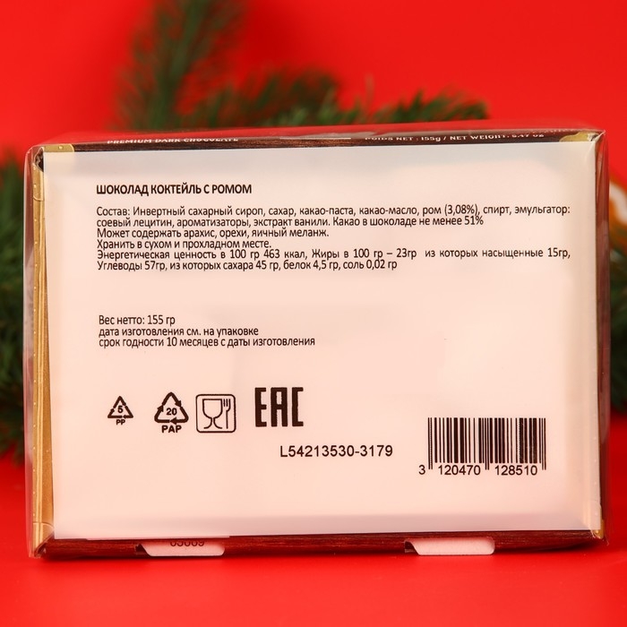 Новый год. Шоколад фигурный RHUM ARRANGE, с ромом, 13 ± 1 г