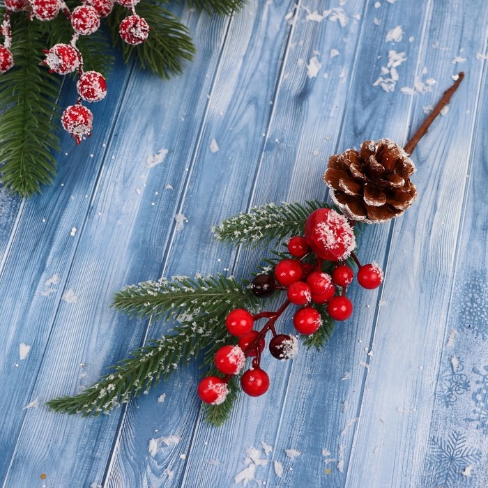 Декор "Зимние грезы" ягоды шишка еловые веточки, 26 см