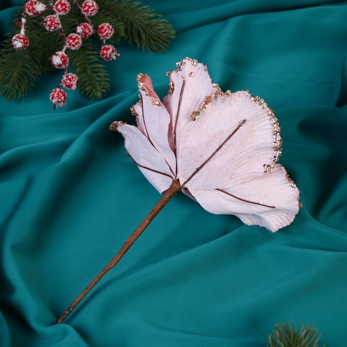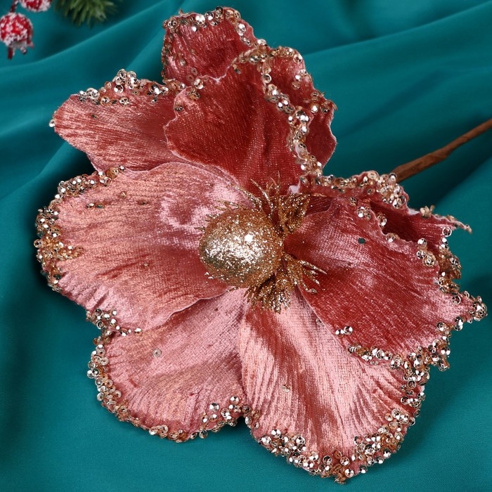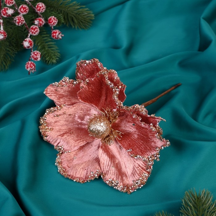 Декор "Зимний цветок" блеск края, 16х20 см, розовый