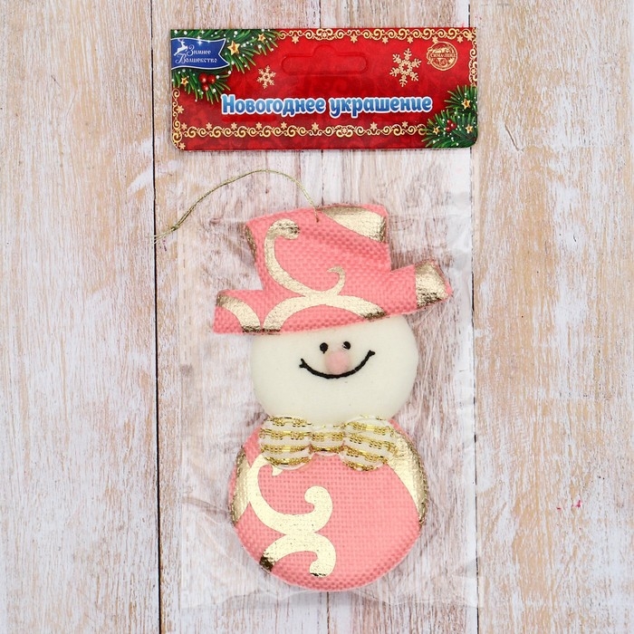 Мягкая подвеска "Снеговик-кругляш" 5х10 см, розовый