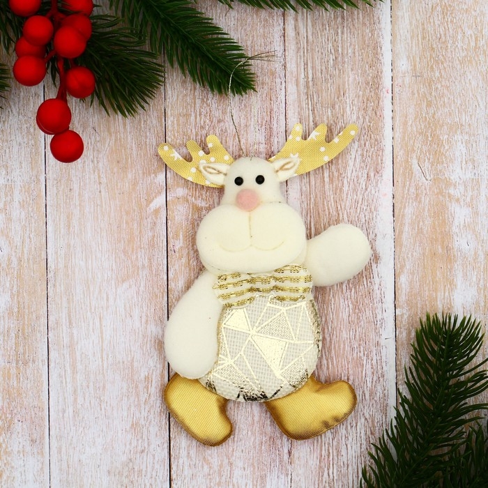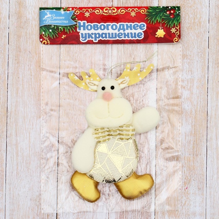 Мягкая подвеска "Олень в костюмчике с геометрическим узором" 6х11 см, золото