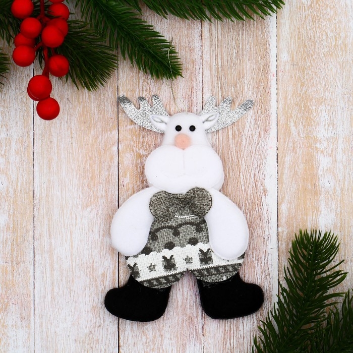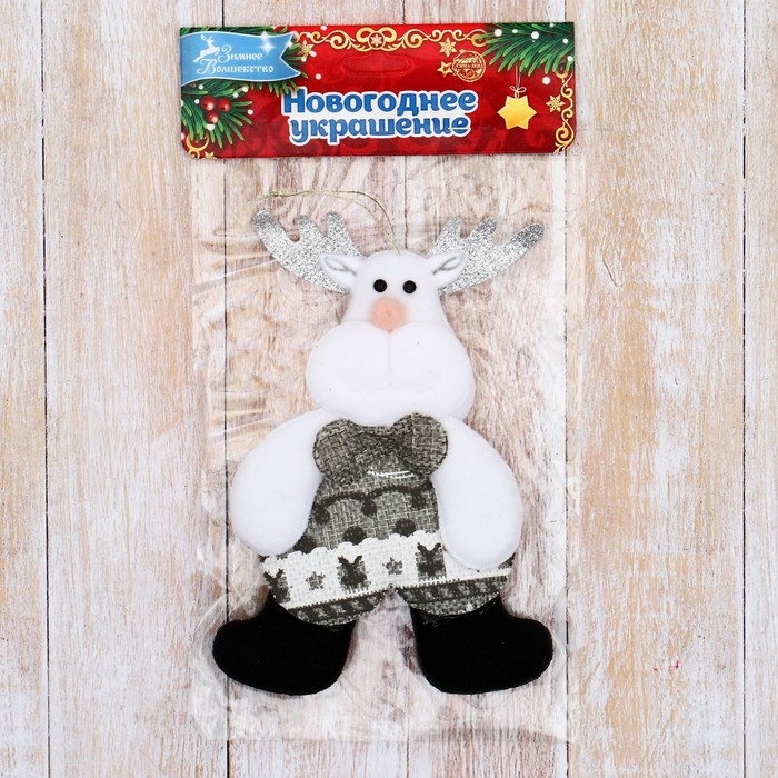 Мягкая подвеска "Олень в костюмчике с орнаментом лес" 8х14 см, серый