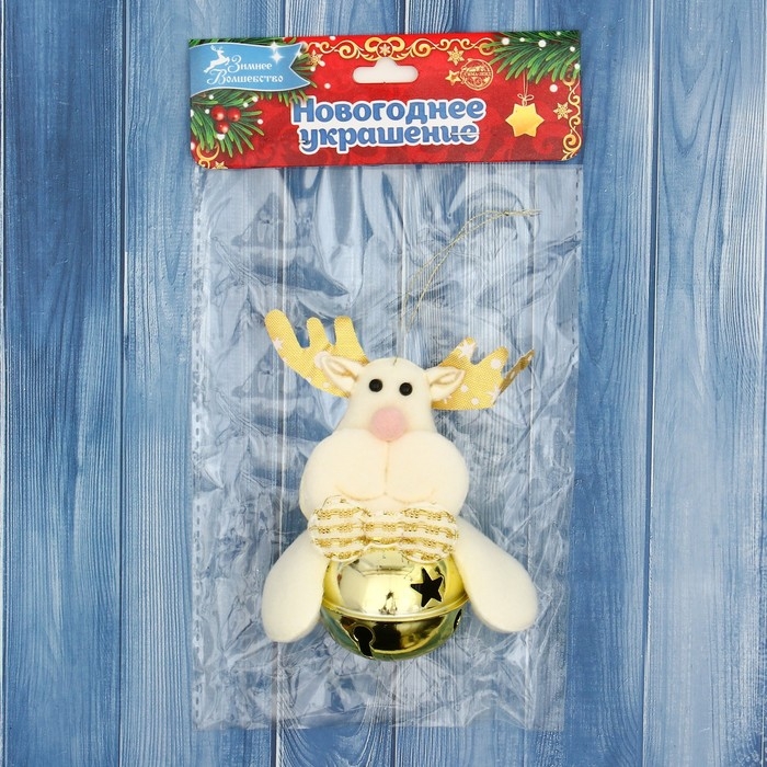 Мягкая подвеска "Олень в шарике" 4х8 см, золото