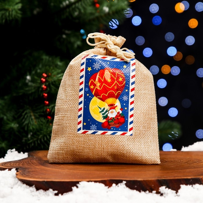 Новый год. Мешок подарочный с термонаклейкой, 13 х 18 см