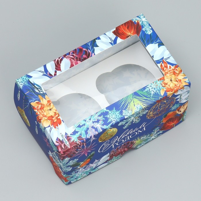 Коробка для капкейков, кондитерская упаковка, 2 ячейки «8 Марта», 16 х 8 х 10 см