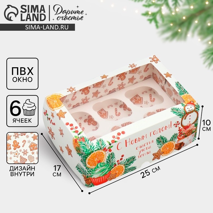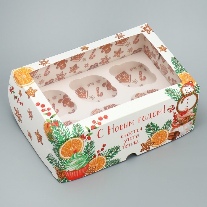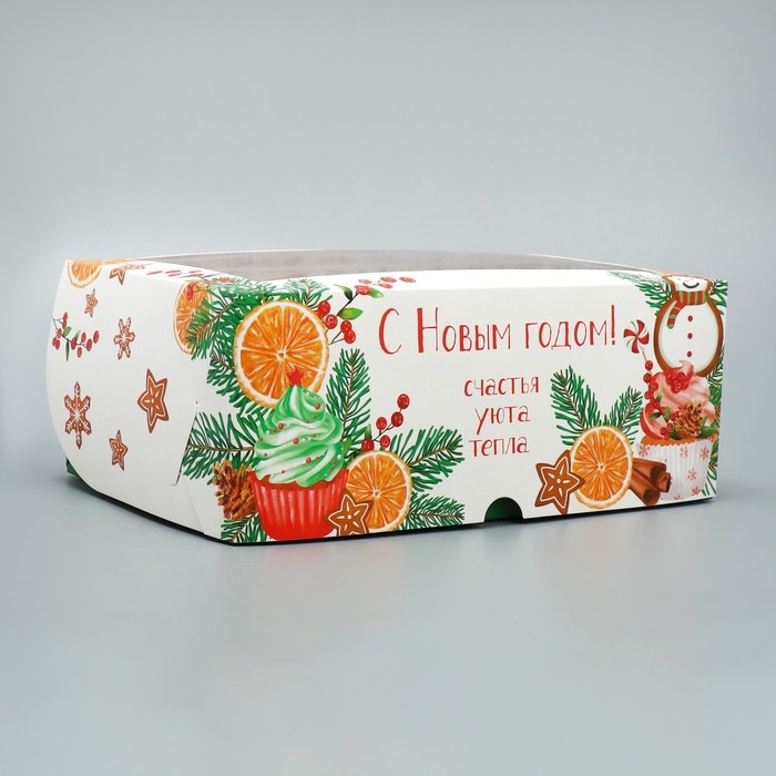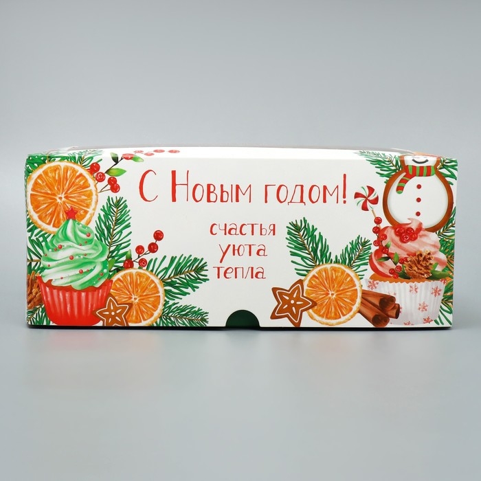 Коробка для капкейков складная с двусторонним нанесением «С Новым годом», 25 х 17 х 10 см, Новый год