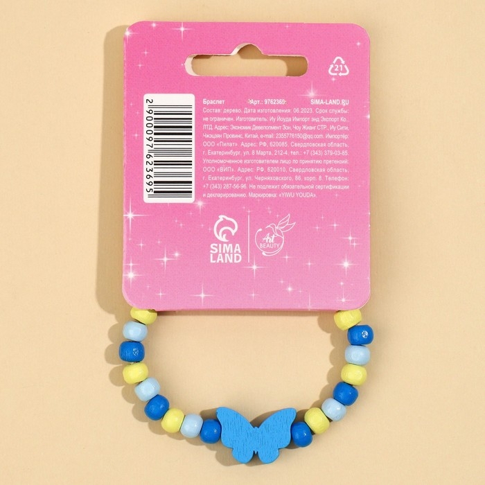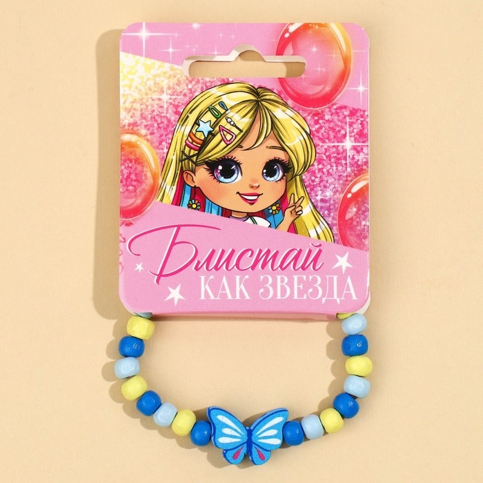 Браслет детский "Выбражулька" на затяжке, бабочка с бусинами сердце, цвет розовый