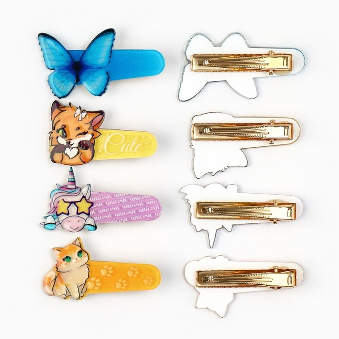 Заколки клик-клак - это самый простой и доступный способ сделать прическу красивой, создать хорошее настроение и подчеркнуть свой модный стиль! Заколка клик-клак выполнена из плотного металла, дополнена красивым украшением, имеет хороший яркий окрас и прослужит долго. Крокодильчики легко крепить на голову, подойдут для всех видов волос.