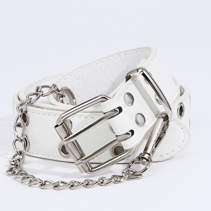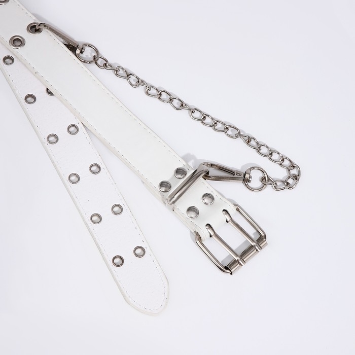 Ремень детский, ширина 3 см, пряжка металл, люверсы, цвет белый