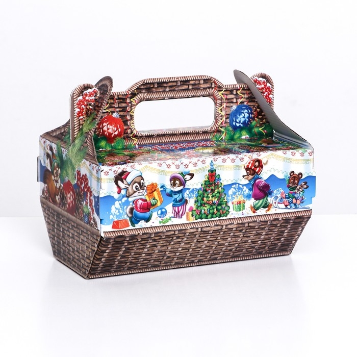 Новый год. Подарочная коробка "Лукошко" 28 x 15,1 x 20,8 см.