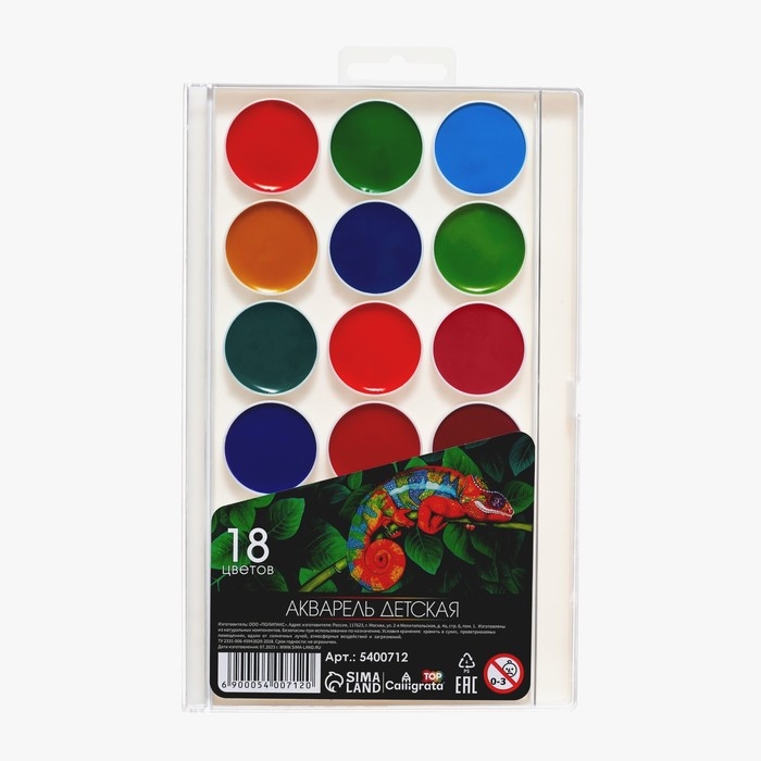 Акварель 18 цветов Calligrata, пластик, европодвес