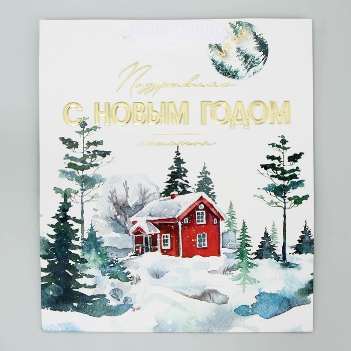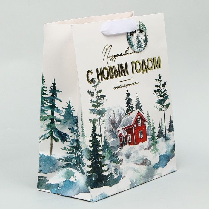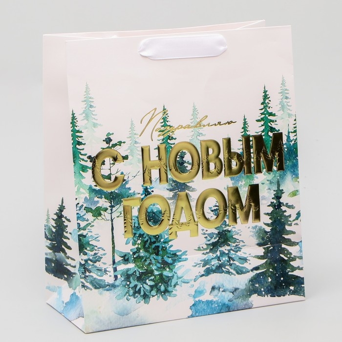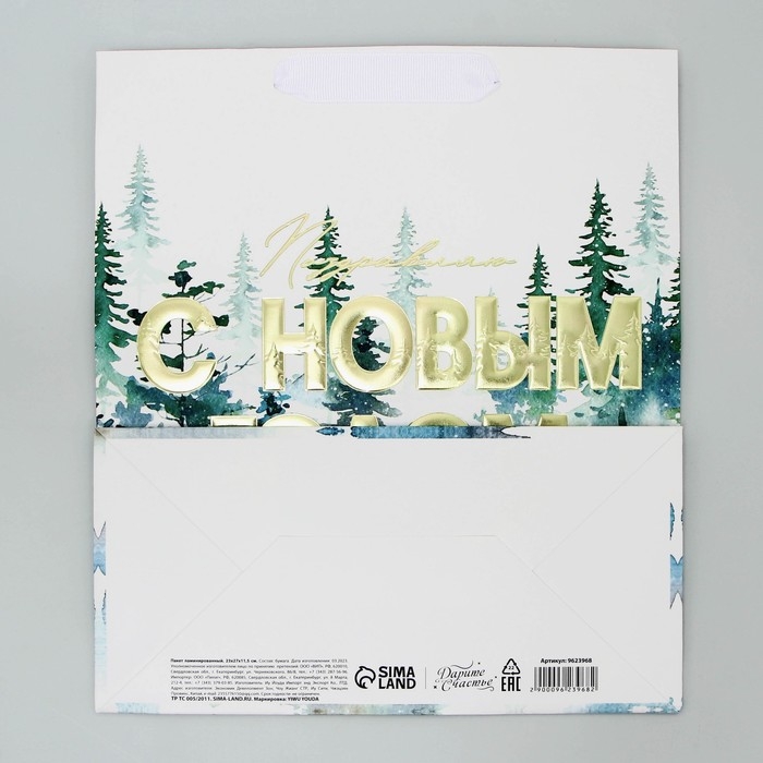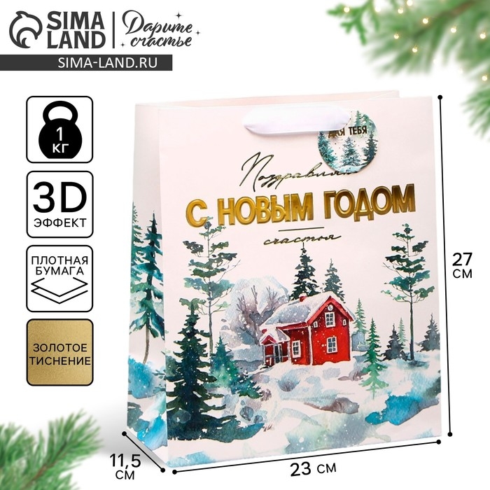 Пакет подарочный новогодний ламинированный вертикальный, конгревное тиснение «С Новым годом», ML 23 х 27 х 11.5 см, Новый год