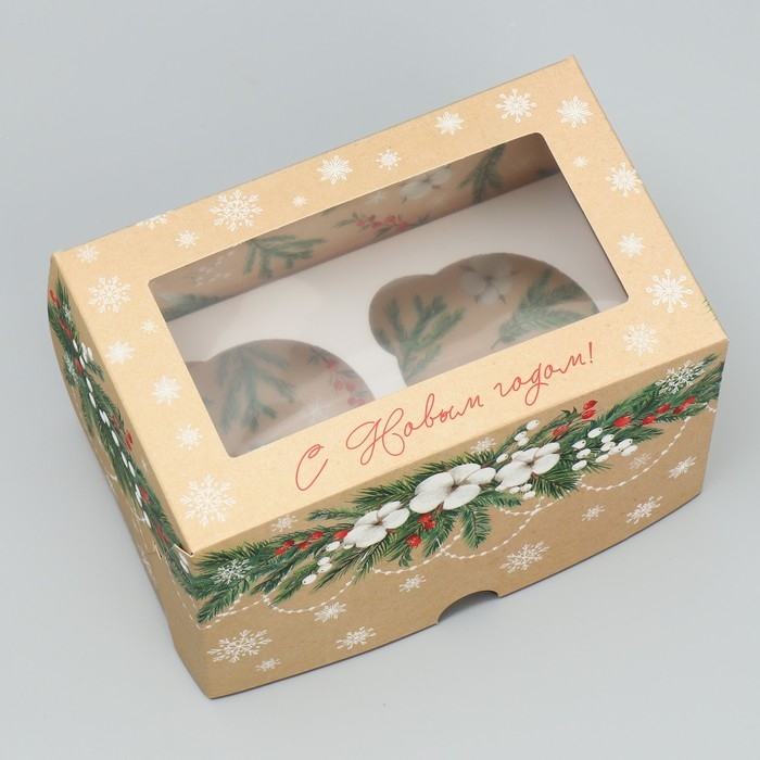 Коробка для 6 капкейков, крафт 23,5 х 16 х 10 см
