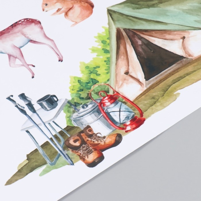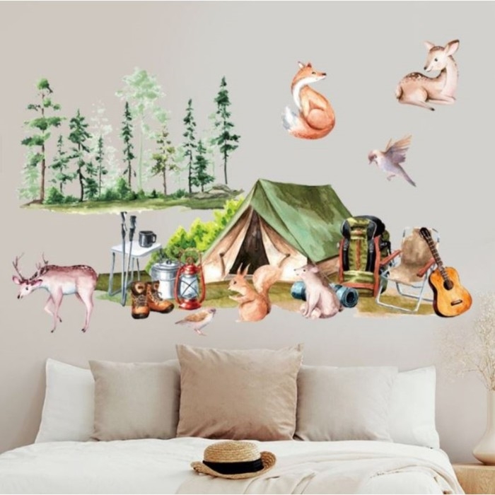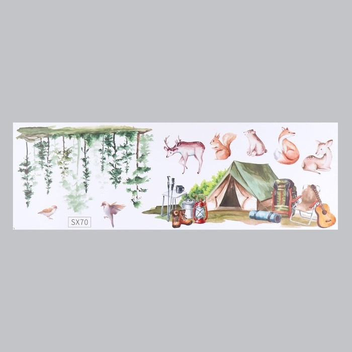 Наклейка пластик интерьерная цветная "Палатка в лесу со зверятами" 30х90 см