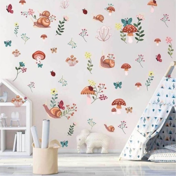 Наклейка пластик интерьерная цветная "Улитки и грибочки" 30х90 см
