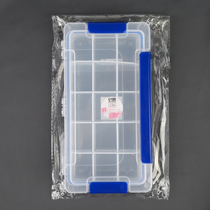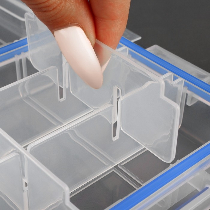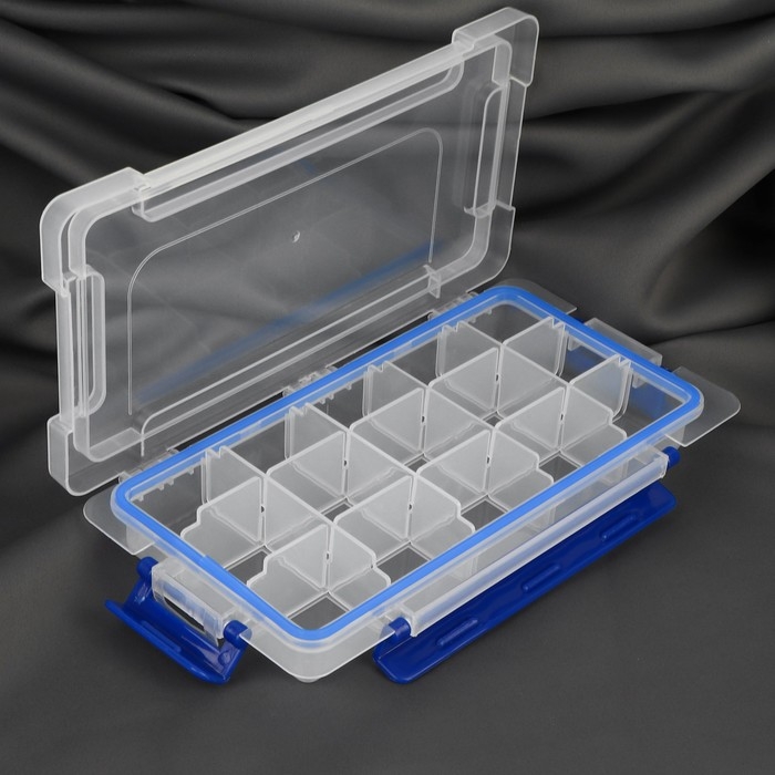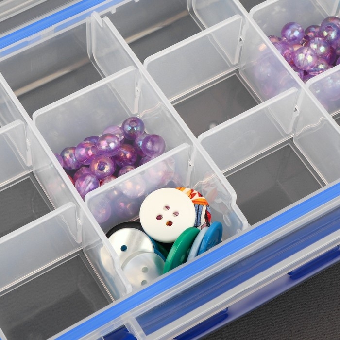 Органайзер для рукоделия, со съёмными ячейками, с подвесом, 15 отделений, 23 × 12 × 3,5 см, цвет прозрачный/синий