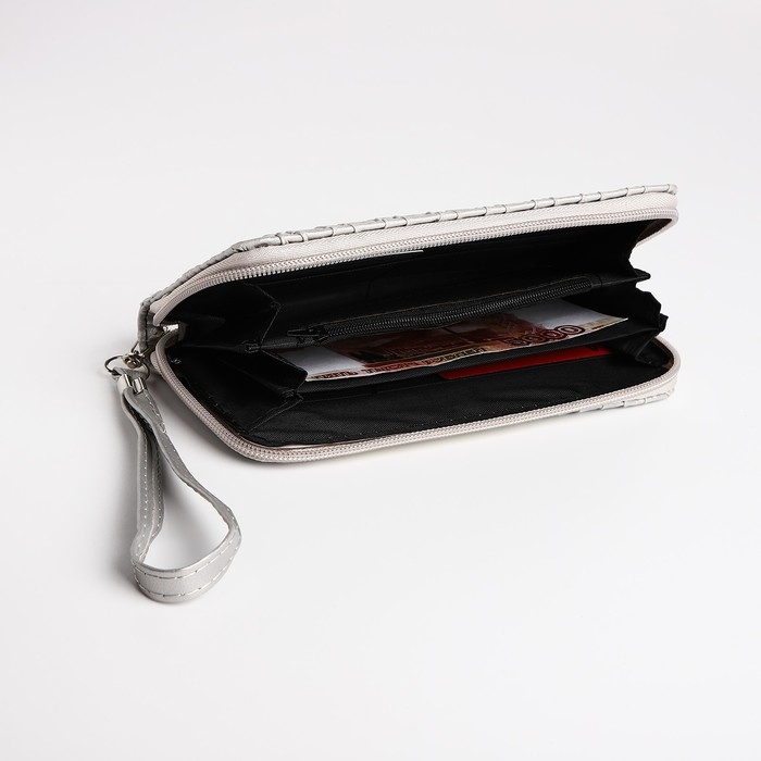 Кошелёк женский на молнии, цвет серебряный