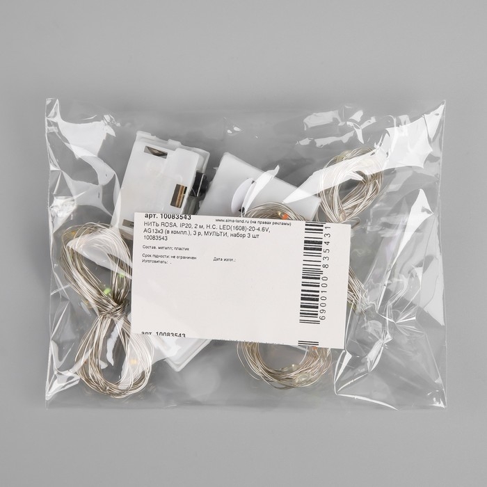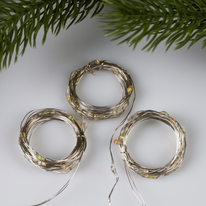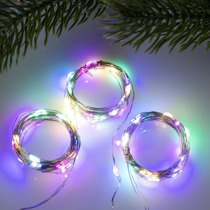 Набор гирлянд «Нить» 2 м роса, IP20, серебристая нить, 20 LED, свечение мульти, 3 режима, батарейки AG13х3 (в комплекте), 3 шт.