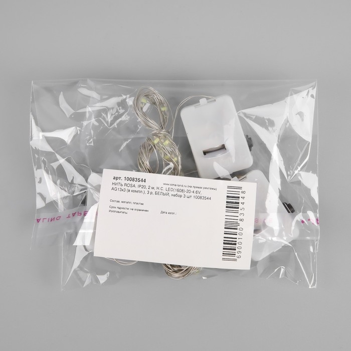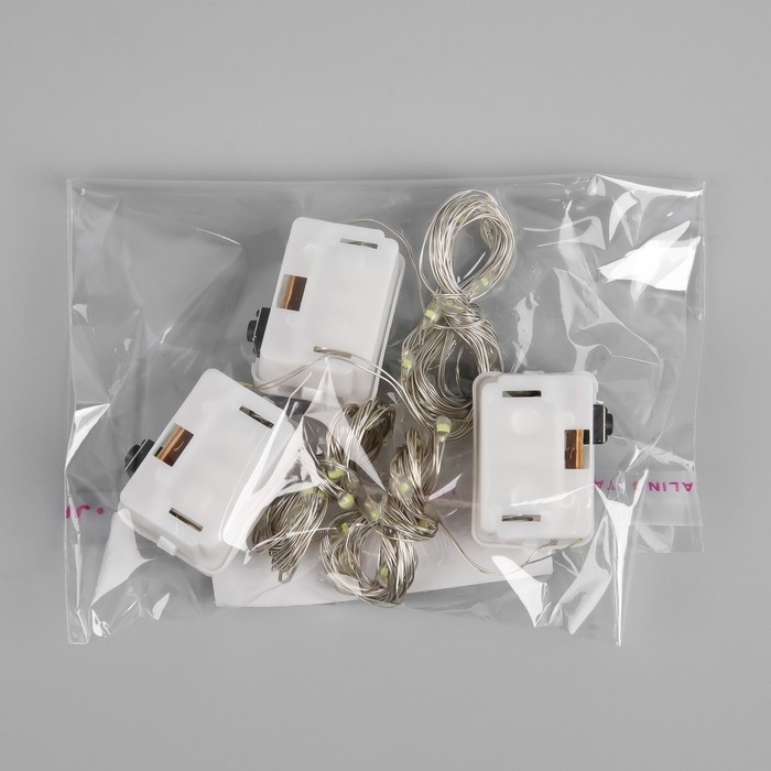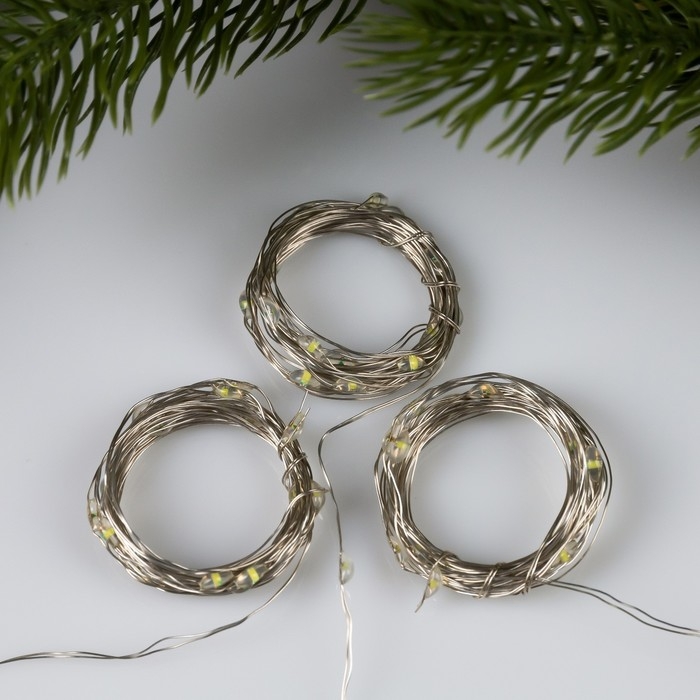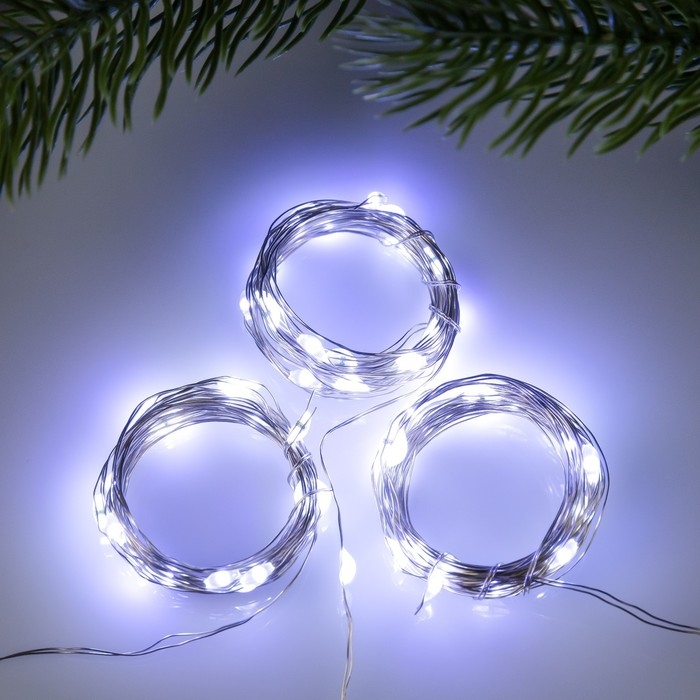 Набор гирлянд «Нить» 2 м роса, IP20, серебристая нить, 20 LED, свечение белое, 3 режима, батарейки AG13х3 (в комплекте), 3 шт.