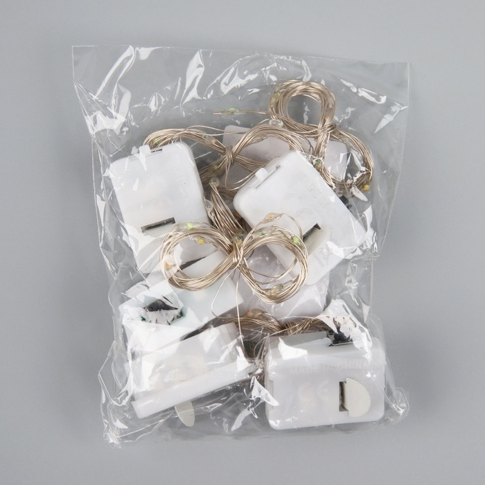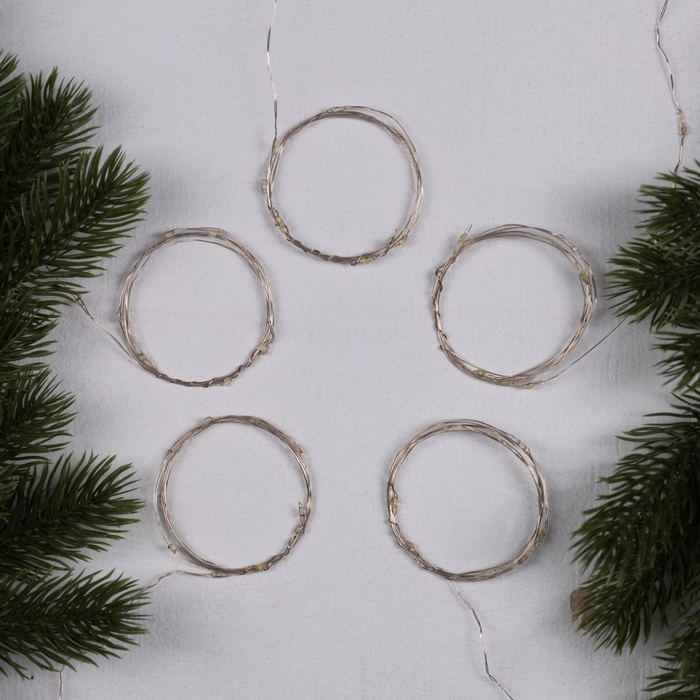Набор гирлянд «Нить» 1 м роса, IP20, серебристая нить, 10 LED, свечение мульти, 3 режима, батарейки AG13х3 (в комплекте) , 5 шт.