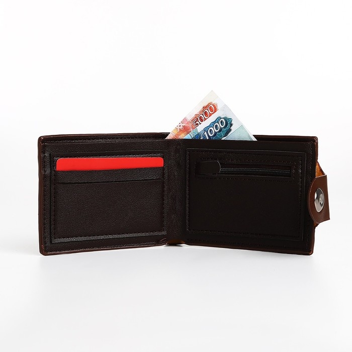 Портмоне мужское на магните, отдел для купюр, для карт, для монет, цвет коричневый