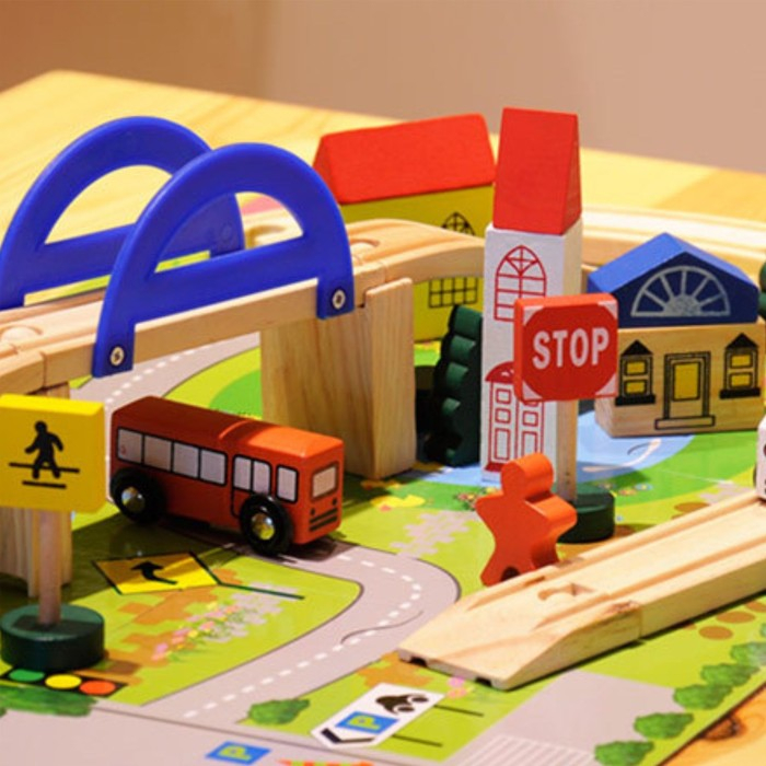 Малыш сможет создавать собственные сюжетные линии. Например, перевозить пассажиров на озеро, в магазинчик и др.