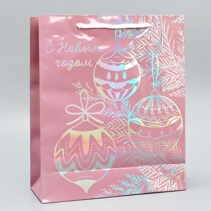 Пакет голографический «Игрушки», M 26 х 30 х 9 см, Новый год
