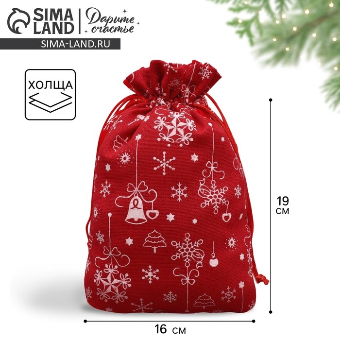 Мешочек подарочный холща «Яркий Новый Год», 16 х 24 см +/- 1.5 см, Новый год