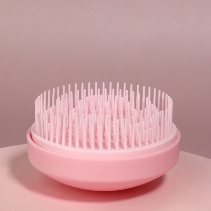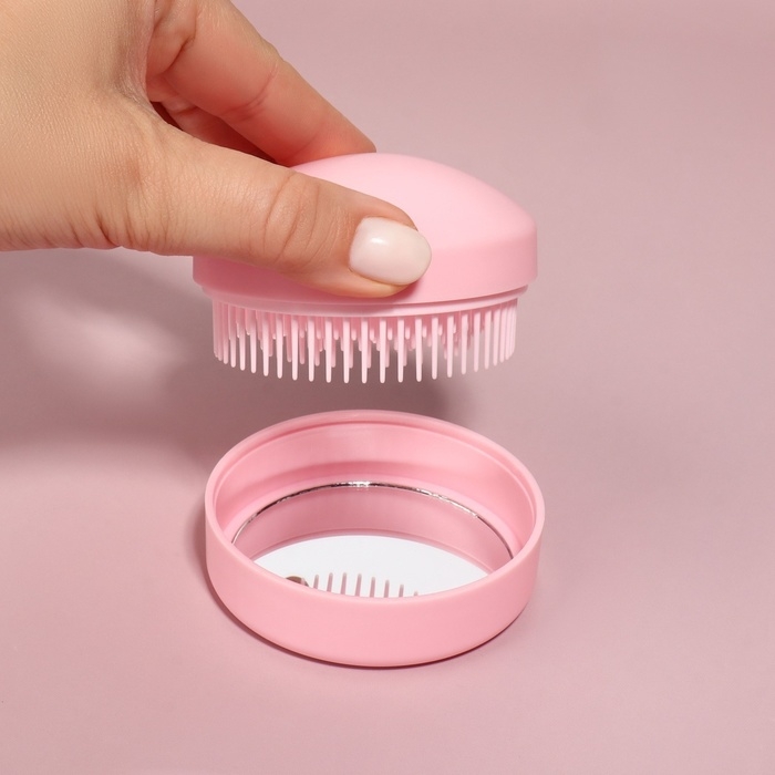 Расчёска массажная, круглая, складная, с зеркалом, d = 7,5 см, в коробке, цвет розовый