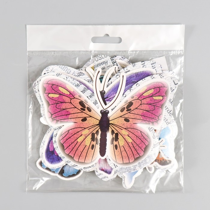 Бабочки картон двойные крылья "Газетные" набор 12 шт h=4-10 см