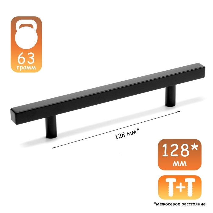 Ручка-рейлинг квадрат CAPPIO, м/о 128, длина 200 мм, цвет черный