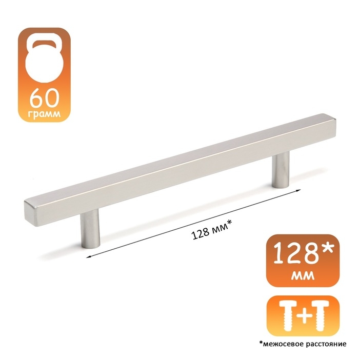 Ручка-рейлинг квадрат CAPPIO, м/о 128, длина 200 мм, нерж. сталь