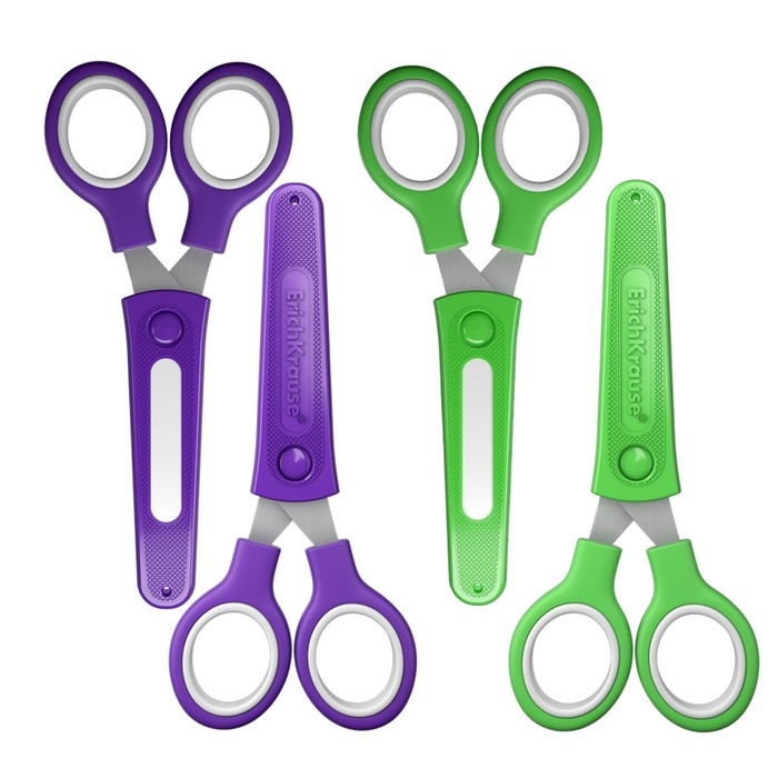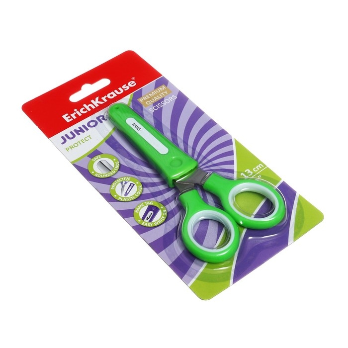 Ножницы детские ErichKrause Junior Protect, 13 см, с пластиковым чехлом и именным стикером, в блистере, МИКС