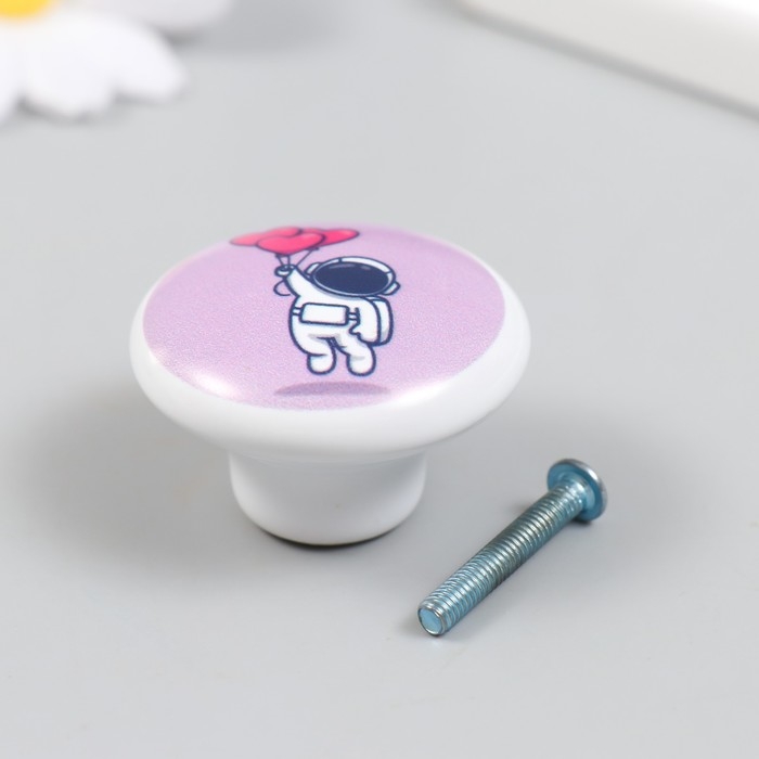 Ручка для шкатулки керамика, металл "Космонавт с воздушными шариками" 3,8х3,8 см