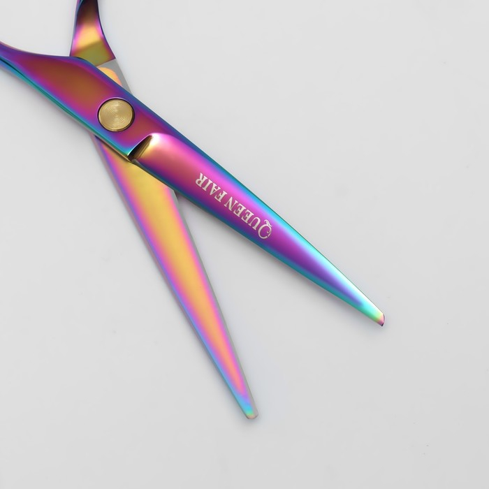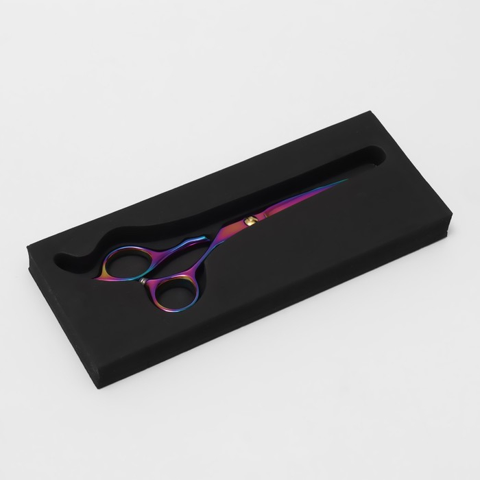 Ножницы парикмахерские с упором «Premium», загнутые кольца, лезвие — 5,5 см, цвет хамелеон